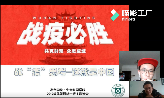 会前,各班同学通过观看冯秀军、陶文铨、艾四林、康震等教授的战疫公开课,了解和学习了此次战疫中的中国力量,感悟了奋斗精神和家国情怀。会上,班主任们组织同学们积极发言讨论,教育引导学生感受中国特色社会主义制度的优越性,同时提振战胜疫情的信心。同学们纷纷发言表示会更加珍爱生命,服从学校和各地防控工作的安排,保持乐观,耐心等待开学通知。针对疫情防护,班主任们均再次提醒同学居家期间应避免聚餐、避免去人员聚集之处,必要出门时应戴好口罩。