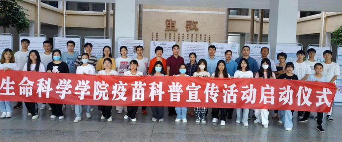 2022年5月9日下午,由我校党委宣传部、团委、教务处、学生处主办,生命科学学院承办,深圳康泰生物制品股份有限公司提供技术支持的疫苗科普知识宣传活动在旭日楼举行开幕式。我校学生处处长胡萍、校团委书记赖昭华、生命科学学院党总支书记梁红梅、院长周立斌、党总支副书记潘勇裕、生物技术系教师代表以及康泰生物疫苗特色班学员合计30余人参加了活动。开幕式由学院副院长谢海伟教授主持。