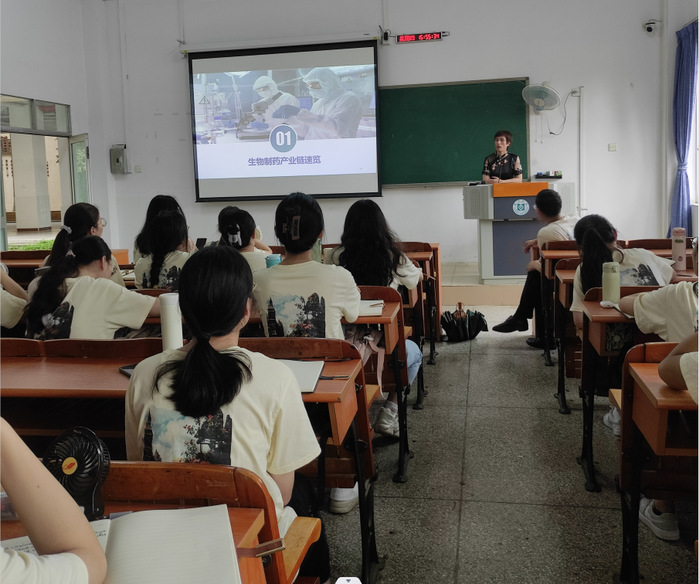 2023年6月8日下午,深圳康泰生物制品股份有限公司生物安全技术总监刘汝为生命科学学院康泰生物疫苗特色学员现场开展《生物安全》第四专题的授课,特色班全体学员在旭日大楼115课室参加听课。