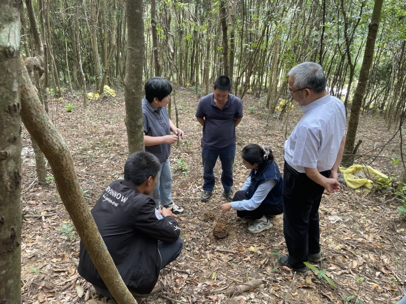 培训结束后,谢锦忠研究员与王欣博士到种植示范基地现场指导林下灵芝仿生栽培的技术,耐心解答农户在栽培过程中遇到的具体问题,根据实地考察和农户反馈的种植问题给予个性化的解决方法。