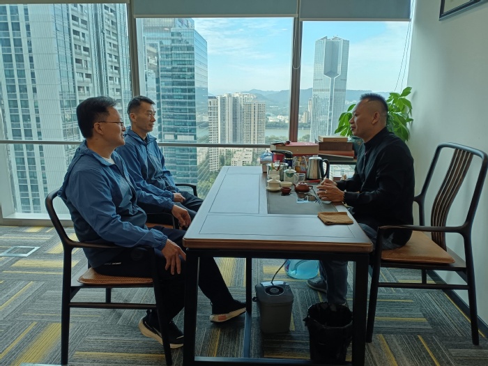 陈振校友对母校老师的到访表示热烈欢迎和衷心感谢。他回顾了在母校的学习时光,分享了创业历程与公司运营管理的经验体会,并表达了进一步加强与学院合作的强烈意愿。双方围绕共建实习实践基地、开展校企合作、参加校友活动等具体事宜进行了探讨,初步达成了合作意向。