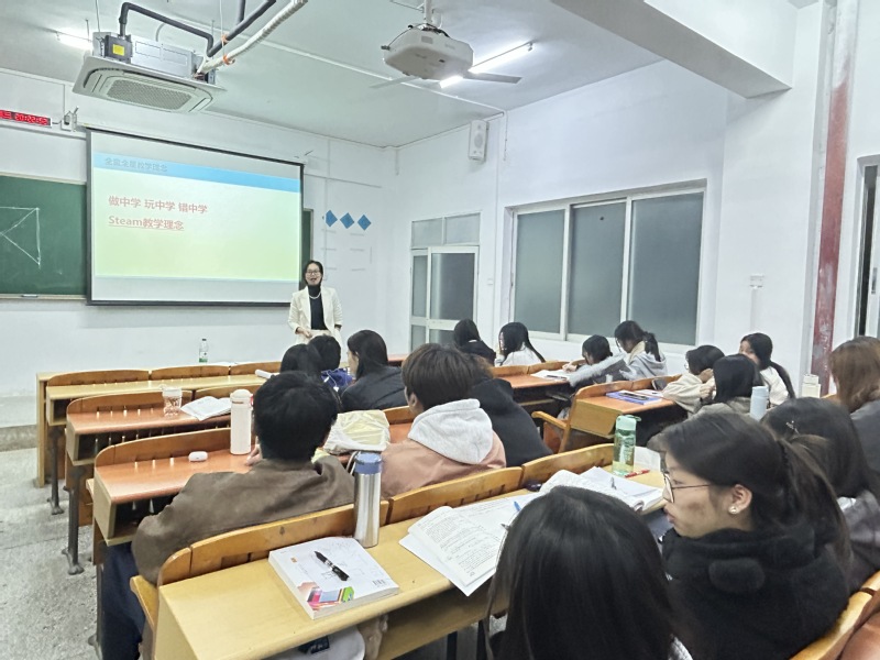 本网讯 2025年11月19日晚上,一场以“科学教育实践与育人使命”为主题的讲座在校园内温情开讲。生命科学学院2024级科学教育专业的同学们齐聚一堂,聆听来自惠州市全童全星机器人编程中心的两位优秀教师带来的教学智慧与教育情怀分享。整场讲座既有教学方法的深度解析,更有育人初心的温情传递,为即将踏上讲台的学子们注入思想的力量。