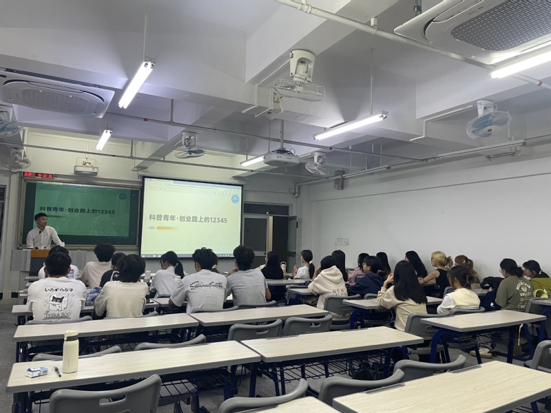 11月5日晚,飞飞实验室创始人吴志鑫校友在旭日楼302教室以《科普青年——创业路上的12345》为题,结合自身经历为学生系统复盘创业历程。吴老师从大学时期积累、社会资源整合到行业深耕,用真实数据和多次“濒临倒闭”的危机案例,生动讲述了创业的艰难与坚持。他强调:“园林不是简单种树,而是创造人与自然对话的空间。创业最难的不是缺钱,而是缺坚持。”其严谨自律、百折不挠的精神深深感染了在场学生,现场掌声经久不息。