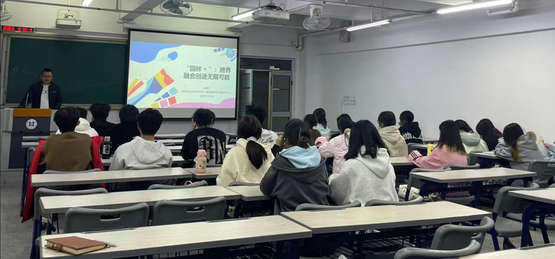 11月19日晚,惠州市林业科学研究所高级工程师刘德浩带来题为《园林+跨界融合创造无限可能》的专题分享。刘老师通过“园林+文旅”“园林+康养”“园林+数字艺术”“园林+电商”等多个成功案例,系统展示了园林专业在新经济背景下的广阔前景。他重点剖析了团队如何将废弃矿山改造为年营收超亿元的网红康养度假区,并寄语学生:“未来十年最大机会不在大城市,而在广大的乡村和存量空间,园林人天生就是城市更新与乡村振兴的最佳操盘手。”两场讲座均采用“导师分享+即时提问+分组路演”的互动模式,导师全程站立授课,与学生零距离交流,课后仍被学生围拢咨询,课堂氛围十分热烈。
