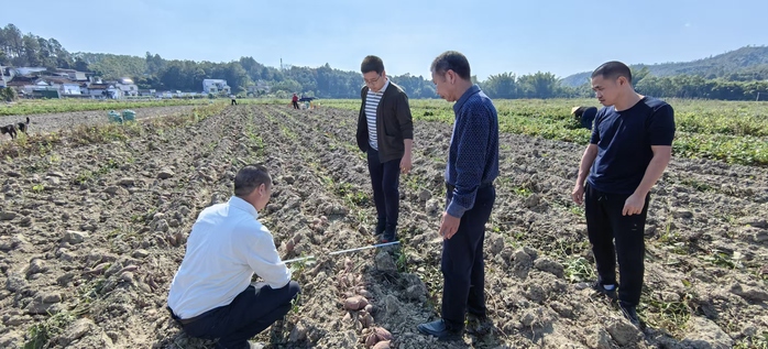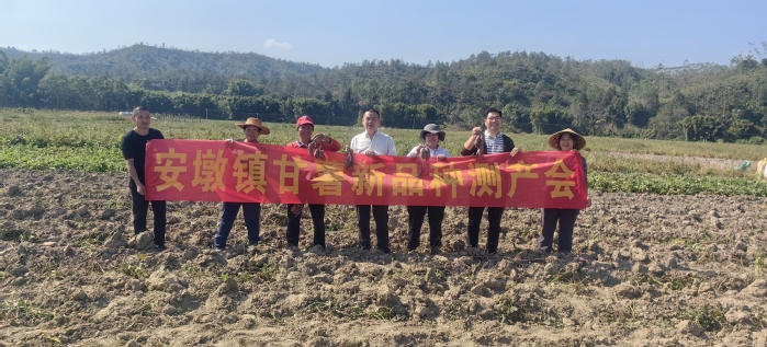 本网讯 为助力惠东县安墩镇甘薯产业的发展,2025年12月9日,我院安墩镇农村科技特派员团队对当地新引进的甘薯品种进行测产,在田间喜迎甘薯新品种的丰收。