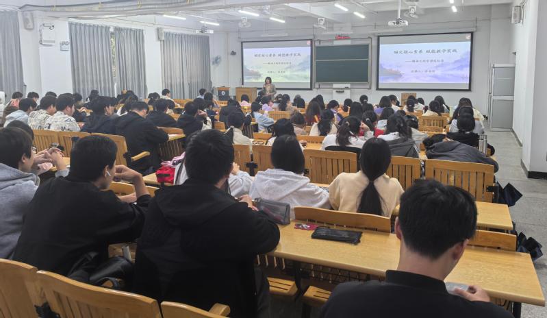 本网讯 为深化师范生对基础教育改革的理解,提升教学实践能力,生命科学学院生物科学系于2025年12月特邀惠城区初中生物教研员苏召玲老师,为《生物学课程与教学论》开展嵌入式课堂系列讲座。讲座聚焦新课标理念与教学实践,通过三次专题授课,助力2024级生物科学专业学生构建“课标-设计-评价”的全链条教学能力培养体系。本系列活动由生物科学系主任解欣斐副教授主持,教师代表及110余名师范生参加。