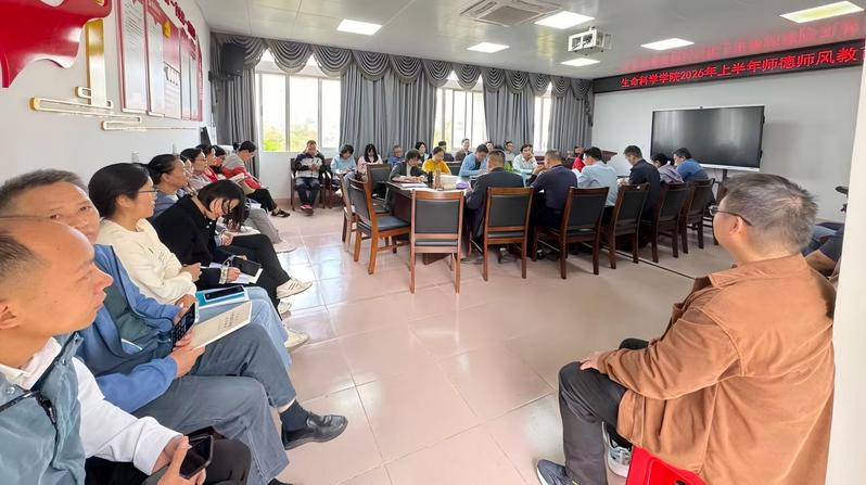 本网讯 为进一步加强学院教师队伍建设,切实提升教师的职业道德素养,生命科学学院于2026年3月11日下午在学院会议室组织召开了春季学期师德师风建设主题教育会议。本次会议由学院党委书记杨敏同志主持,学院全体教职工参加了会议。