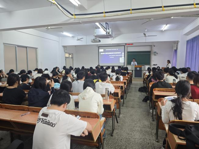 本网讯 为助力师范生深入理解中小学课程改革精神,提升教材分析与教学实践能力,2026年3月至4月,生命科学学院生物科学系邀请吴小明副教授和惠州仲恺中学田小丽老师,为2024级生物科学专业110余名学生开展了《中学生物学课程与教材研究》嵌入式课堂系列讲座。系列活动围绕“教材分析、教学设计与概念教学”三大主题,共举办三场讲座,由系副主任蔡敏玲博士主持。